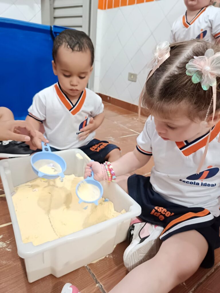 Atividade de transferência – Estimula a autonomia, concentração e coordenação motora fina, para que a criança se torne cada vez mais apta em seus movimentos. Apesar de parecer uma tarefa simples, ela tem um grau de dificuldade alto para a faixa etária, promovendo a estimulação e o desenvolvimento da criança.