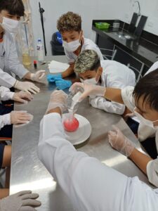 Experimento “leite que explode”: tem por finalidade quebrar a densidade do leite e liberar gás carbônico na forma de espuma. O bacana da mistura do