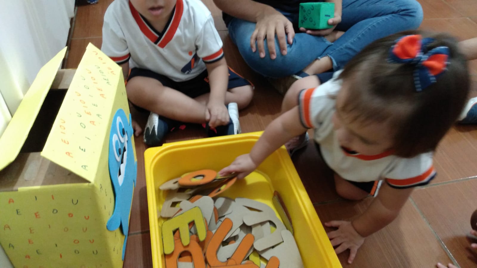 A semana passada o Maternal desenvolveu muitas atividades pedagógicas! A turma trabalhou coordenação motora com diferentes materiais, teve contação de história com “A casa sonolenta” e para finalizar desenvolveram a atividade “PAPA VOGAL”, onde os alunos pintam as vogais depois depositam na caixa com o auxílio das professoras. Confiram as fotos na galeria abaixo!